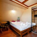 -3 pokoje 4-osobowe typu studio (pokój ten jest dzielony drzwiami tworząc 2 mniejsze pokoje)